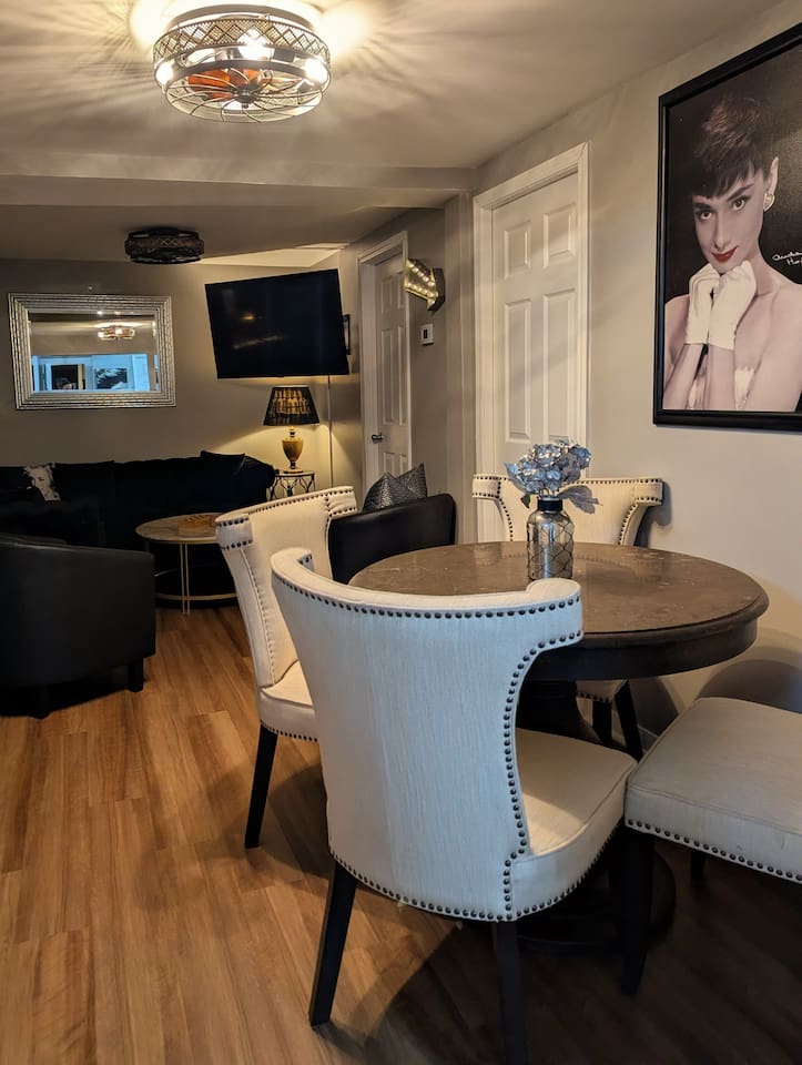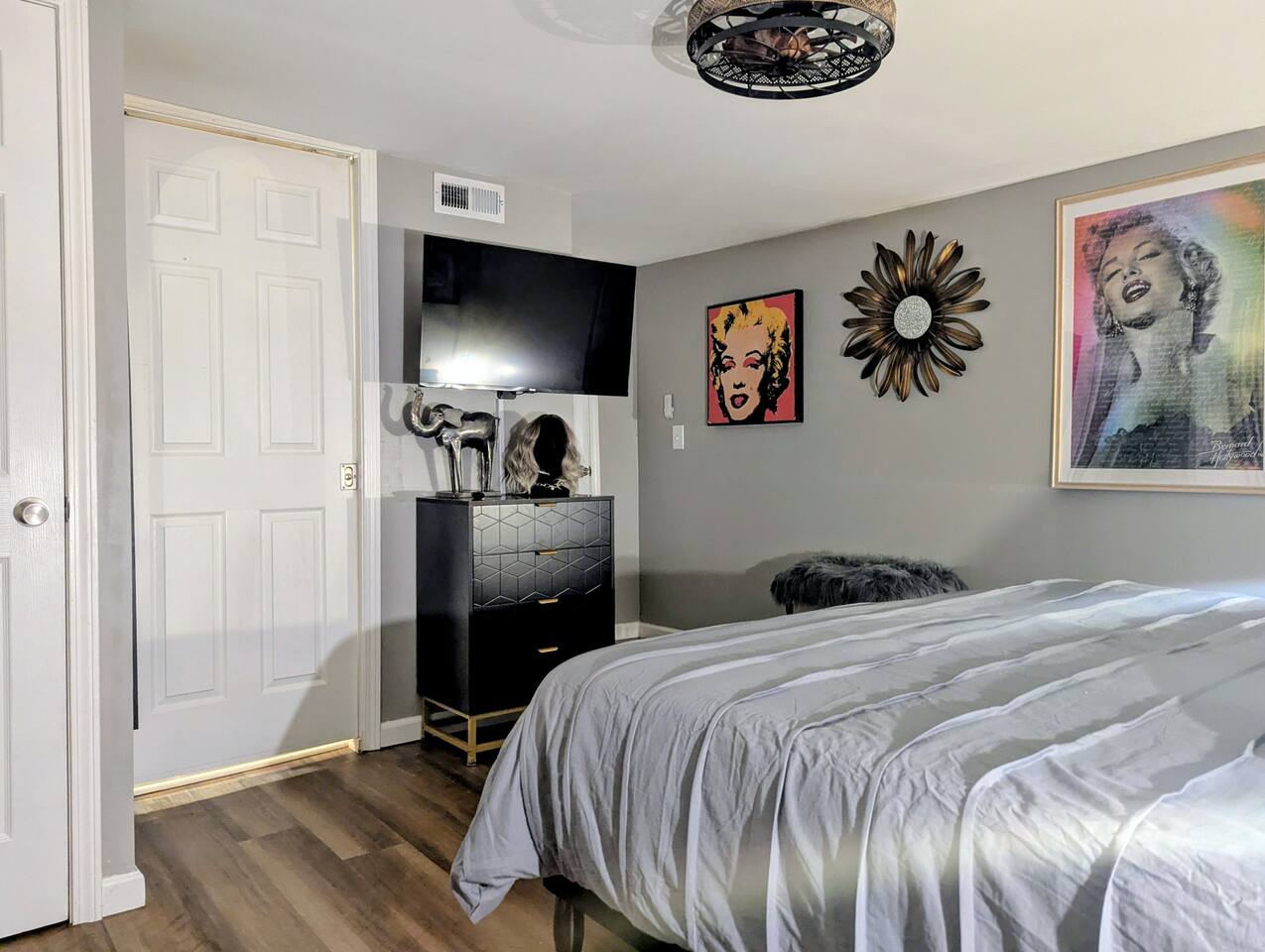 The Hillside Hottie is located near the the historic downtown square of Corydon where you will find a schedule of events, quaint shops, and fine dining within walking distance! The Hillside Hottie is so-named because #1 it features a delightful hot tub! Secondly, it struts a unique decor showcasing iconic beauties of the past. Photos of Marilyn Monroe, Audrey Hepburn, & Betty Davis adorn the walls throughout. Visit the caves or local wineries nearby and then relax in the evening in the hot tub!